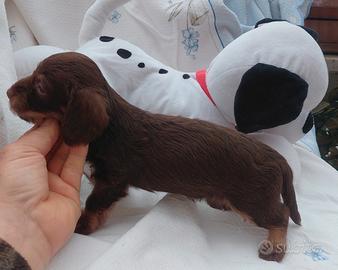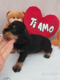 Privato dispone di una splendida cucciolata di bassotti pelo ruvido con pedigree Enci .Disposti come segue : 1 maschietto arlecchino cioccolato 1 maschietto nero focato 2 maschietti choco 1 femminuccia choco .I cuccioli ben tenuti sono visibili presso la zona dei castelli romani .Verranno consegnati a 70 gg con vaccino ASL intestato al cliente microchip e pedigree enci.Si consegnano anche con 3 sverminazioni e kit puppy x il proseguimento della vita del cucciolo .X qualsiasi altra informazione dettagliata potete inviare un messaggio o telefonare al 3886265659 Sabrina .Grazie