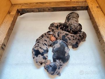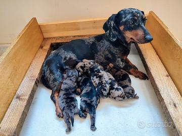Disponibili cuccioli di bassotti, nati 08-04-26, mamma arlecchino padre nero focato. Verrà consegnato con vaccinazioni, sverminazioni, microchip