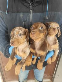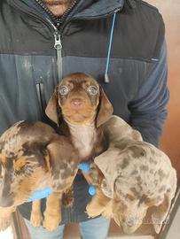 splendidi cuccioli di bassotto femmine e maschi disponibili di circa 75 giorni. I cuccioli saranno ceduti con libretto sanitario, sverminazioni effettuate, quadro vaccinale avviato, microchip, iscrizione all'anagrafe canina, passaggio di proprietà e fattura. Possibilità di pagamento rateale. Effettuiamo consegne in tutta Italia, il nostro allevamento si trova a Sarno, in provincia di Salerno. Ci trovi su tutte le pagine come "exotic french kennel". Per ulteriori informazioni 3801794943.