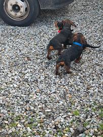 Vendo cuccioli di bassotto tedesco color cinghiale taglia media.svermati e vaccinati.figli di ottimi cani da caccia al cinghiale.genitori visibili.molto bravi con i bambini. Nati a metà giugno.