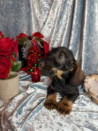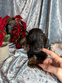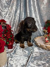 Subito disponibili un maschio e una femmina di bassotto tedesco nano a pelo duro - forte colore nero focato genitori visibili in sede madre arlecchino foglia secca taglia nana , svermati due volte, due vaccini eseguiti, visita veterinaria, libretto. Ideali da compagnia o lavoro. Possibilità di spedizione in tutta Italia spese a parte