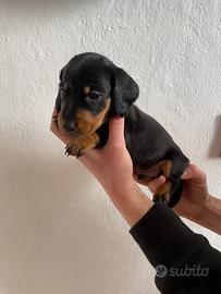Cuccioli di bassotto nano nati in casa in data 11/01/2026 Disponibili dal 11/03/2026 con primo vaccino, microchip e vermifugo. Per info 3349010154, disponibili a videochiamate e visite
