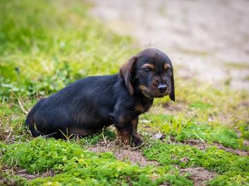Cucciolina di bassotto femmina, 60 giorni. Dolcissima, affettuosa e sempre in cerca di coccole. Ama stare in compagnia ed è abituata al contatto umano, perfetta per le famiglie. É cresciuta in casa e abituata alla traversina. La cucciola è già sverminata e vaccinata e gode di ottima salute. Disponibile da subito per entrare in una nuova casa piena di amore!