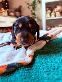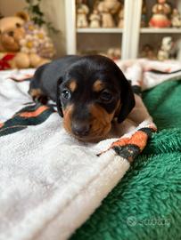 Si cede ultima Bassottina di tre di una cucciolata . Mamma fulva nana e padre piebald bianco nero nano . Entrambi visibili in quanto di mia proprietà. Cuccioli puri e cresciuti in contesto familiare con bambini e altri bassotti . Verra' ceduta da i primi di marzo con : Sverminazione e vaccino , libretto di buona salute . Disponibile a vederla perché mi trovo a due passi da Roma /avezzano / ovindoli . Solo realmente interessati e consapevoli che una cucciola di piccola taglia e di grandi attenzioni.. perché il bassotto è UNICO E SPECIALE.