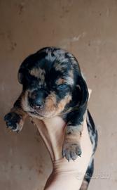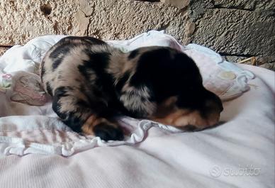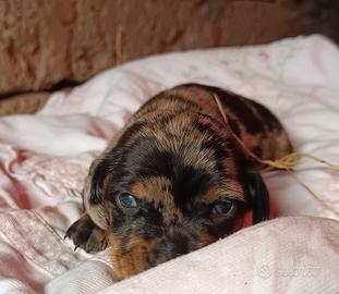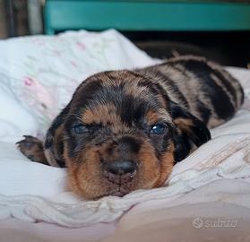Disponibile bassottino Arlecchino Silver maschio nato da madre kaninchen nero focata e padre Arlecchino-cioccolato nano. Il cane sarà ceduto comprimo vaccino, due sverminazioni, microchip. Può viaggiare in tutta Italia perché disponiamo del trasporto certificato ASL.