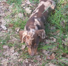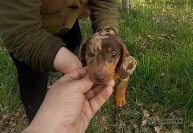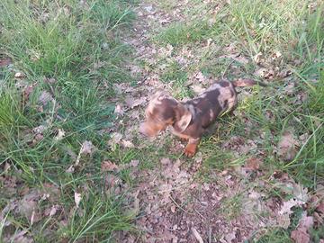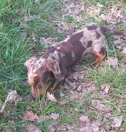 Cucciola di bassotto arlecchino choco di 70 giorni madre arlecchino choco padre cioccolato,fatto primo vaccino e sverminata 3 volte,presumibilmente taglia kaninken molto bella,pronta x andare in una nuova famiglia, astenersi perditempo e sognatori 333 7743807