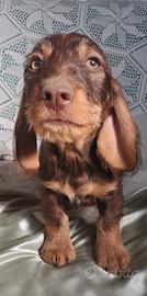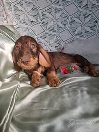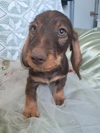Disponibile in allevamento cucciolo di bassotto nano a pelo duro mantello cinghiale con pedigree Enci nato il 04/02 e subito disponibile per il ritiro con chip, 2 vaccini, certificato di buona salute , trattamenti per parassiti interni ed esterni, regolare iscrizione in anagrafe canina e passaggio di proprieta'; Il cucciolo e' visibile in allevamento con entrambe i genitori di mia proprieta' , dna depositato , esenti da malattie genetiche , figli di campioni di lavoro e bellezza, soggetti supertipici. Disponibile per la consegna in Italia e all'estero . Scrivere su whatsapp per un primo contatto 3331360061
