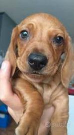 Piccolo meraviglioso maschiettino di Bassotto taglia nana, colore rosso cervo di 80 giorni può abbandonare da subito il nido famigliare.