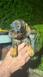 Vendesi bassottina a pelo duro nata il 09/03/2025. Viene ceduta dal 09/05/2025 con sverminazione, vaccinazioni, microchip e iscrizione all'anagrafe canina.