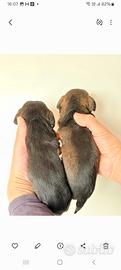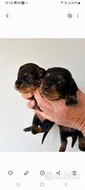 Vendo cucciole di bassotto a pelo duro solo femmine nati il 25- 03 da genitori madre taglia nano piccola e padre kaninchen ottime linee di sangue li sverminati due vaccini microchip certificato di buona salute e pedigree enci saranno disponibili dopo I 60 giorni dalla nascita. PER INF 338 8901564 ANGELO POSSIBILITÀ DI CONSEGNA IN TUTTA ITALIA CON FURGONE AUTORIZZATO COSTO PER IL TRASPORTO CIRCA 12O EURO.