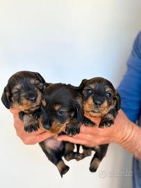 Vendo cucciole di bassotto SOLO FEMMINE nate il 25 03 da madre nano e padre kaninchen genitori Bosco vecchio Quinoa x Sedano Della rocca dei papi, si consegnano dopo i 60 giorni dalla nascita sverminati primo vaccino microchip certificato di buona salute e pedigree enci .PER INF 338 8901564 Angelo POSSIBILITÀ di consegna in tutta Italia con furgone autorizzato costo per il trasporto circa 12O euro .