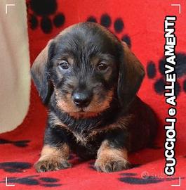 Disponibili in Allevamento riconosciuto Enci/Fci per la selezione della razza Bassotto Tedesco, di comprovata e pluriennale esperienza, bellissimi cuccioli di Bassotto Tedesco a Pelo Duro con Pedigree di Alta Genealogia.