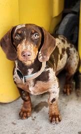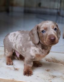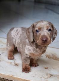 Bassotto esotico Disponibile 2 mesi Ultimo Con 1 vaccino ciclo sverminazione libretto sanitario Kit puppy Mamma kaninken Blu Papà Nano/standard choco arlecchino tan Disponibilità 1 maschio Arlecchino isabella tan occhi azzurri Colorazione rara Cucciolo dal carattere molto affettuoso ,ha bisogno di una famiglia che gli dia tanto amore Per tutte le info non esitate a contattarmi Possono arrivare in tutta italia con trasportatore di fiducia