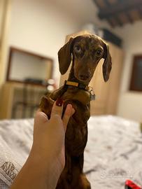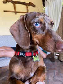 Meraviglioso stallone di bassotto tedesco a pelo corto di 3 anni colorazione arlecchino cioccolato Kaninchen,peso 3.5kg occhio blu disponibile per monta Per informazioni 3208080916 Cristian