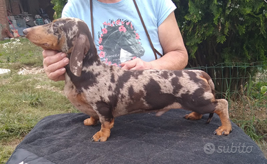 Disponibile per accoppiamenti bellissimo bassotto nano di colore arlecchino cioccolato nato nel 2022 caratte tranquillo e giocherellone completo di pedigree enci, dna, test genetici e conferma di taglia. Per ulteriori informazioni mi potete contattare anche tramite whatsapp