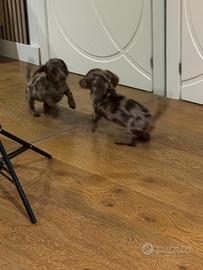 Maschio di bassotto arlecchino chocolate viene ceduto con Microchip,vaccini,sverminazioni,iscrizione anagrafe. Taglia piccola. Peso genitori mamma 5,1kg e papà 4kg Info solo telefonicamente al 3513450782
