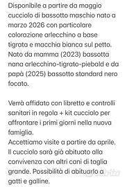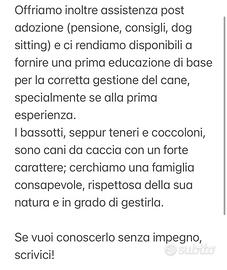 Cucciolo di bassotto arlecchino maschio di due mesi (affidato a partire da). VEDI FOTO PER LA DESCRIZIONE COMPLETA Verrà affidato con libretto, vaccinazioni e controlli in regola + kit cucciolo e assistenza post adozione (inclusi nel prezzo). Accettiamo visite a partire da aprile. Per conoscerlo, scrivici senza impegno!