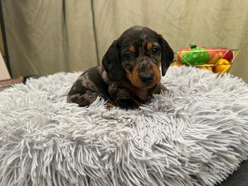 Maschio taglia piccola , colore silver arlecchino , pronto al ritiro , ceduto con libretto sanitario primo vaccino e sverminazione . ha 65 giorni , già vaccinato , sverminato e vista sanitaria eseguita , cucciolata casalinga , possibile fare videochiamata , sono un privato .