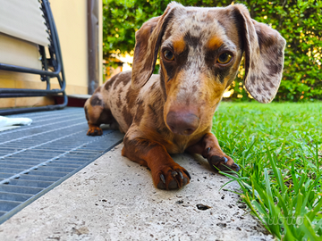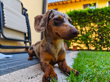 Bassotto arlecchino di 8 mesi, carattere tipico dei bassotti dolce e testardo, bellissimo, giocherellone, instancabile. si offre per monte da riproduzione. No ENCI.