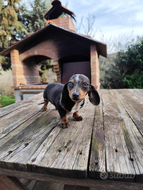 Bassotto Arlecchino kaninchen femmina di 110 giorni con occhi eterocromi ,ha 4 vaccini, libretto sanitario,tratt . Antiparassitario e microchip Spedizione in tutta Italia