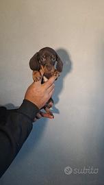 Disponibili cuccioli di Bassotto cioccolato Taglia kaninchen o taglia nana I cuccioli hanno 2 mesi Li cedo con il libretto sanitario, il michrochip, vaccinati e sverminati Genitori visibili Nati in casa Abituati a sporcare sulla traversina Per maggiori informazioni o appuntamento potete contattarmi al 331/4355320