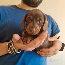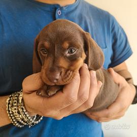 Disponibile una meravigliosa cucciola di Bassotto, mantello color cioccolato (chocolate), nata il 28 febbraio. Una piccola "cioccolatina" rara e dal carattere dolcissimo, cresciuta in ambiente familiare e pronta a riempire di gioia la sua nuova famiglia. ? Dettagli della Piccola: Sesso: Femmina Data di nascita: 28 Febbraio 2026 Colore: Marrone intenso (Chocolate) Carattere: Vivace, socievole e molto affettuosa. I genitori sono visibili presso la nostra abitazione. ? Salute e Garanzie: La cucciola verrà ceduta garantendo la massima serietà e cura: Svezzamento completo. Ciclo di sverminazioni effettuato. Primi vaccini registrati su libretto sanitario. Microchip inserito. Genitori visibili. Note aggiuntive: La piccola è già pronta per essere conosciuta. Cerchiamo per lei una famiglia amorevole e consapevole. Cell 393 944 7709 chiamare/ scrivere su WhatsApp per ulteriore info e foto