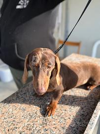 Stallone di Bassotto Cioccolato Arlecchino disponibile per monte. Per qualsiasi informazione contattatemi al 3923282438 Emanuele (ci troviamo a Messina centro).