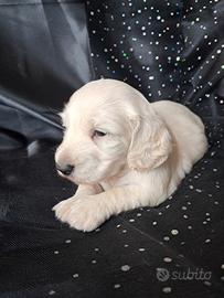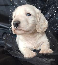 Bellissimo e raro cucciolo maschio di bassotto light cream pelo lungo nato il 13 marzo e disponibile dal 15 maggio con chip, due vaccini, trattamenti per parassiti interni ed esterni, certificato di buona salute e czrtificato di origine ; I genitori entrambe nani ed entrambe crema sono visibili in allevamento insieme al cucciolo, testati e pra clear . Disponibile per la consegna in Italia e all'estero . Scrivere su whatsapp per un primo contatto 3331360061. Prezzo nn trattabile .
