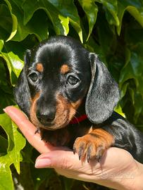 Splendidi e dolcissimi cuccioli di bassotto, alta genealogia, genitori con DNA depositato, probabile taglia nana piccola o Kaninchen, nati il 26 marzo, muniti di pedigree, microchip, vaccinazione e sverminazioni. Già abituati all'uso della traversina e dal carattere dolce ed estremamente socievole. Per informazioni contattare telefonicamente il 3291360642.