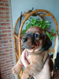 Bassotto cucciolo maschio fulvo carbonato nato il 20 aprile disponibile a luglio svezzato con primo vaccino e sverminazioni. Genitori visibili. Per info e prenotazioni contatto su WhatsApp al 349 43 12339.