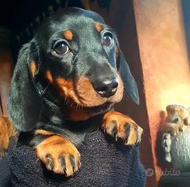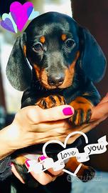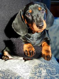 Splendidi cuccioli di bassotto Nero Focato probabile taglia Kaninchen o Nana piccola, nati il 26 marzo saranno ceduti con pedigree iscrizione anagrafe canina microchip vaccinazione e sverminazioni. I cuccioli saranno già abituati all'uso della traversina hanno un carattere molto dolce perché già abituati fin da piccoli a socializzare. Per qualsiasi informazione, contattare il 329 13 60 642.