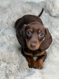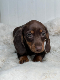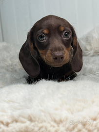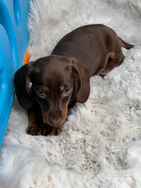 Disponibile da subito bellissimo cucciolo femmina di bassotto colore cioccolato ottimo stato di salute! Solo per persone veramente interessati no perditempo no regalo genitori visibili sul posto!