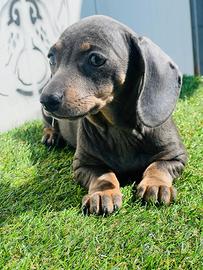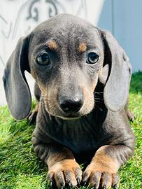disponibile da subito bellissimo cucciolo di bassotto femmina colore blu,libretto sanitario,vaccino,già sverminata,genitori di nostra proprietà.No regalo!