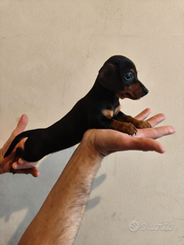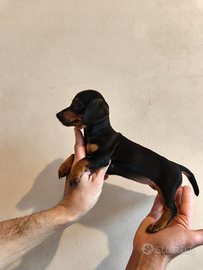 Disponibile cucciola di bassotto femmina probabilmente di taglia kaninchen. La cucciola verrà ceduta a due mesi con vermifughi, due vaccini, microchip e pedigree. Possibilità di consegna in tutta Italia. Prezzo non trattabile