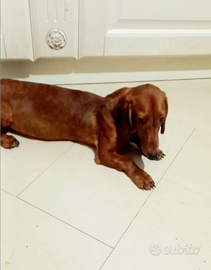 Bellissimo bassotto fulvo red , taglia standard... Carattere docile e socievole, molto affettuoso e va d accordo con chiunque, e di buona compagnia anche x anziani... Il cucciolo ha compito 11 mesi, ed è cresciuto in ambiente familiare, Lo cedo sverminato, con 2 vaccini, microchip inoculato, antiparassitario inserito, e libretto sanitario certificato. Per info potete contattarmi al 340 3085388. O al 349 781 2886. Prezzo 350 euro finito. Se siete interessati non esitate a contattarci.