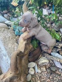 Bellissimo cucciolo di Bassotto isabella maschio di taglia kaninchen con gli occhi azzurri