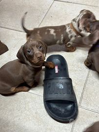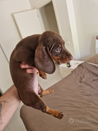 Disponibili spettacolari cuccioli di bassotto kaninchen cioccolato di 3 mesi sia maschi che femmine natu e cresciuti in casa abituati alla traversina ed al contatto con le persone verranno consegnati con primo vaccino e ciclo completo di sverminazione per qualsiasi informazione non esitate a contattare