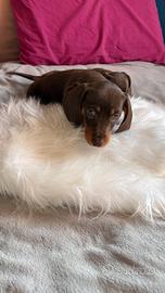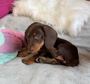 Dolcissime meravigliose cuccioline di bassotto kaninchen di color cioccolato disponibile da subito in quanto hanno due mesi compiuti.