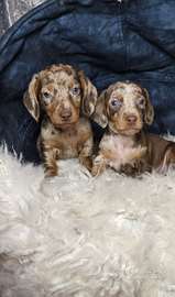 Si cedono splendide bassotto taglia Kaninchen/nano color cioccolato 850 euro color arlecchino cioccolato 900 euro color nero focato 550 euro, color blu 800 con carattere dolce ed equilibrato. Informazioni sanitarie: Prima vaccinazione effettuata 2 Sverminazione Controllo veterinario generale eseguito microchip Cresciute in ambiente familiare, ben socializzate, abituate al contatto umano e ad altri animali. Usano gia la traversina. Mamma visibile, Per informazioni, foto e visite conoscitive, contattare in privato; 3792098313