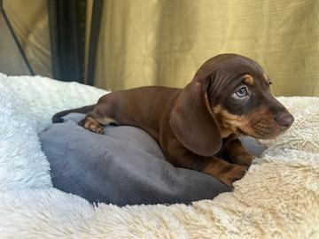 Disponibili cuccioli di bassotto kaninchen colore cioccolato e nero focato 70 giorni
