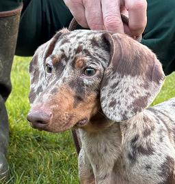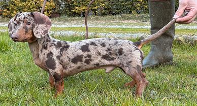 Bassotto kaninchen nella colorazione arlecchino cioccolato di un anno, disponibile per monta. Prezzo 500