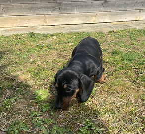 Disponibile bellissimo maschietto di bassotto kaninchen nero focato.. Due mesi di età.. lo cediamo con due vaccinazioni, due sverminature e microchip