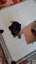 Si cedono splendidi Bassotti taglia Kaninchen color nero focato una femmina ed un maschio 500 euro color euro con carattere dolce ed equilibrato. Informazioni sanitarie: Prima vaccinazione effettuata 2 Sverminazione Controllo veterinario generale eseguito microchip Cresciute in ambiente familiare, ben socializzate, abituate al contatto umano e ad altri animali. Usano gia la traversina. Mamma visibile, Per informazioni, foto e visite conoscitive, contattare in privato; 3792098313 Possibilità di consegna in tutto Italia il prezzo e a parte rispetto la distanza