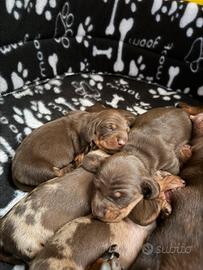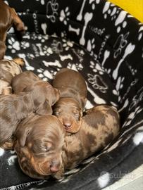 Bellissima cucciolata nata il 13/4, disponibili da metà giugno 2 maschietti e una femminuccia marroni, verranno rilasciati con PEDIGREE ENCI, sverminazione, microchip e primo vaccino. Per ulteriori informazioni in privato
