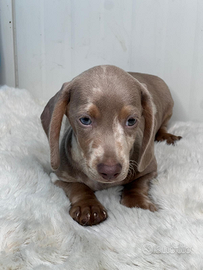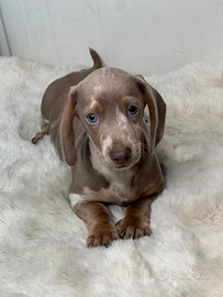 Disponibile da subito bellissimo cucciolo maschio di bassotto colore isabella arlecchino ottimo stato di salute!