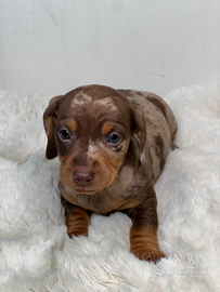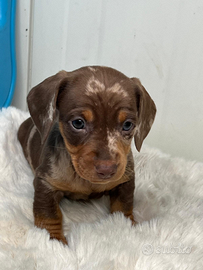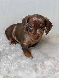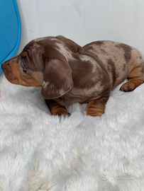 Disponibile da subito bellissimo cucciolo maschio di bassotto colore cioccolato arlecchino ottimo stato di salute!