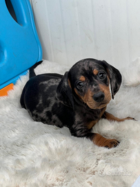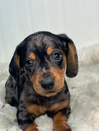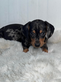 Disponibile da subito bellissimo cucciolo maschio di bassotto colore silver arlecchino ottimo stato di salute! solo per persone veramente interessati no perditempo no regalo genitori visibili sul posto!