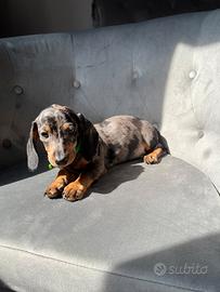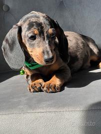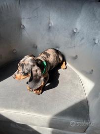 disponibile da subito bellissimo cucciolo maschio di bassotto colore silver arlecchino ottimo stato di salute! solo per persone veramente interessati no perditempo no regalo genitori visibili sul posto!