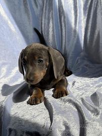 disponibile da subito bellissimo cucciolo di bassotto maschio colore blu ottimos stato di salute! solo per persone veramente interessati no perditempo no regalo genitori visibili sul posto!
