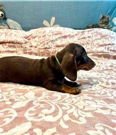 Bellissimo cucciolo di bassotto a pelo corto, nato il 26/12 dolce e coccolone abituato alla traversa e socializzato con cani e gatti Genitori visibili. Subito disponibile per andare nella sua nuova famiglia. Viene ceduto completamente vaccinato, sverminato, con chip e pedigree ENCI.